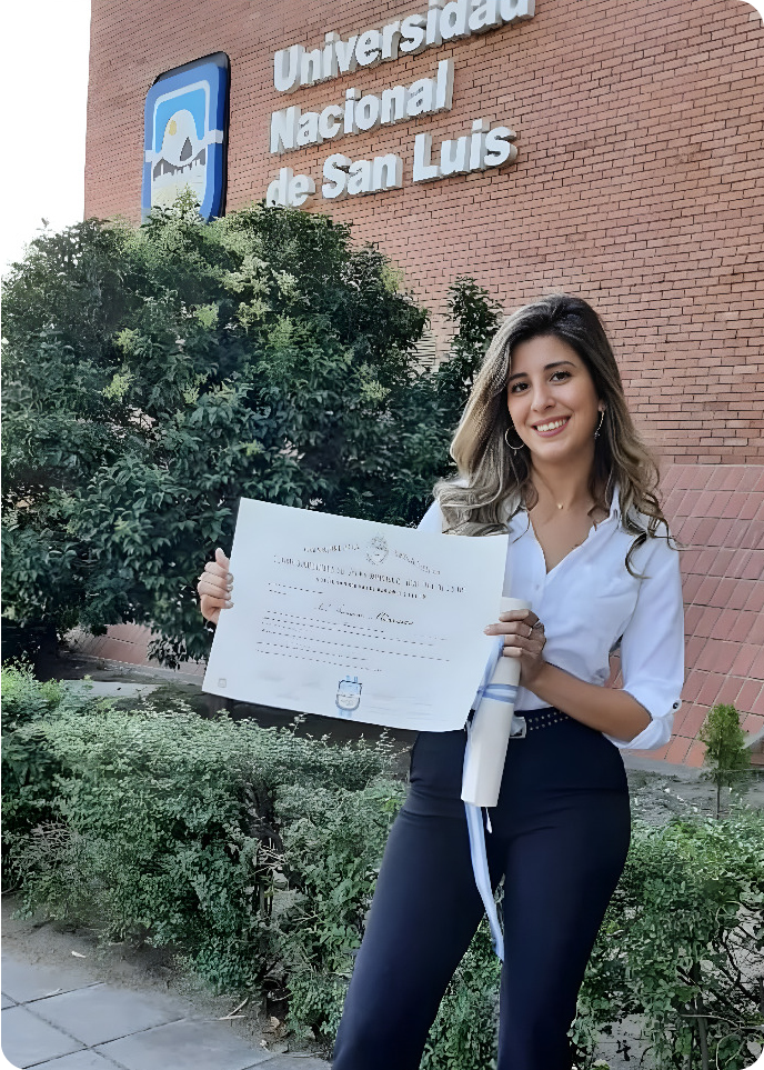 Me egresé en 2021 de la Universidad Nacional de San Luis como Licenciada en Kinesiología y Fisiatría.